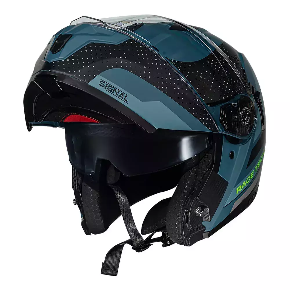 Capacete Race Tech Signal Gear Escamoteável Azul Preto Fosco
